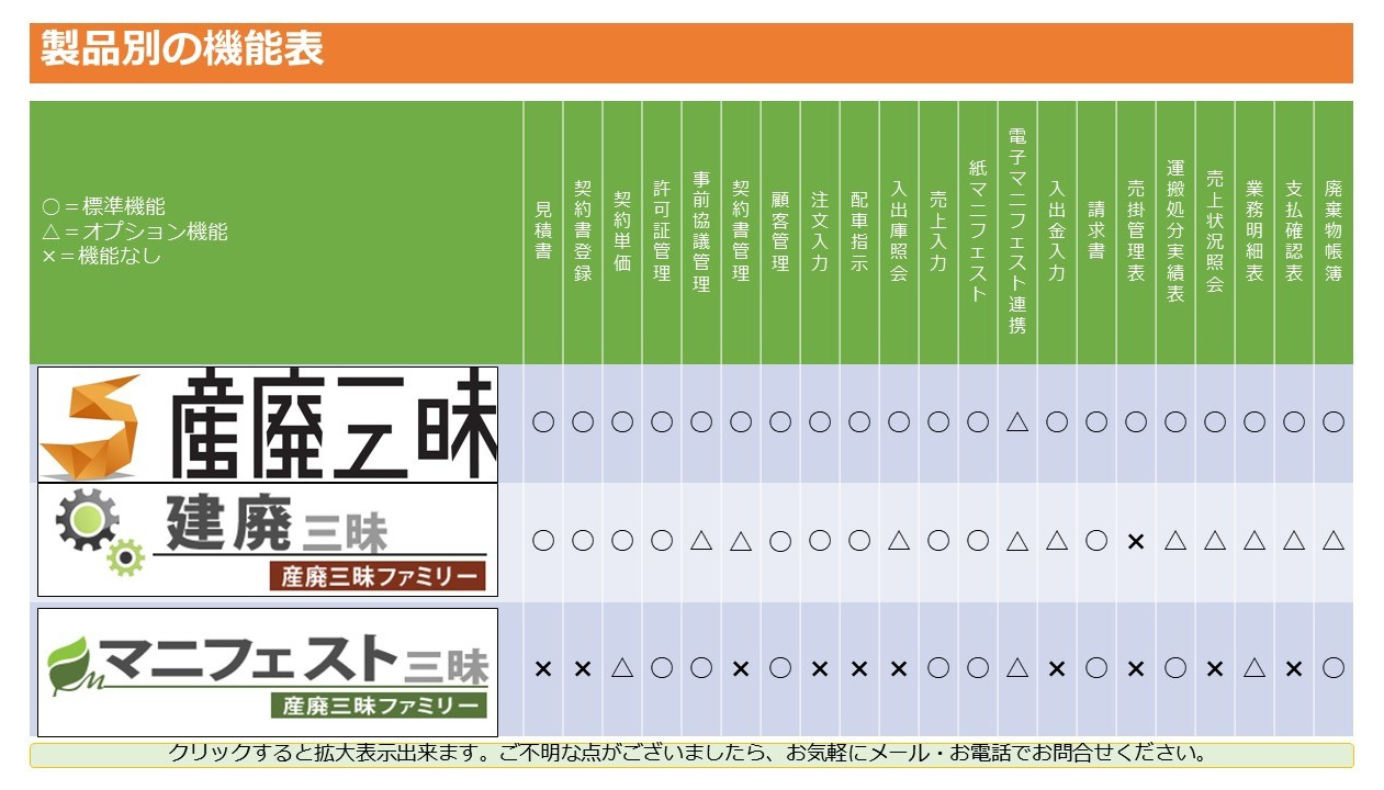 収集運搬業者様、処理業者様のお客様には、配車・売上・請求などの基幹業務を統合した製品もございます。